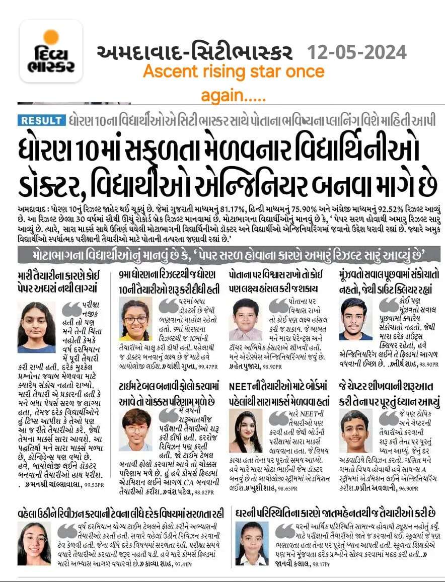 When I joined Ascent Rising Star, I struggled with low confidence in math and science. But as I followed Sir’s guidance and techniques, my results transformed. Whatever I am today, I credit to Kansara Sir. He is not just my mentor; he consistently gives me the right advice and puts in individual effort for each student. His humility and dedication have truly turned my life onto the right path, and I am so grateful for his support.changed my relationship with math and gained the confidence to keep moving forward